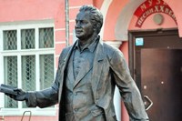 Скульптуру поэта работы Игоря Черноглазова установили в новом сквере у Музея Песни ХХ века на средства нацпроекта "Жилье и городская среда".