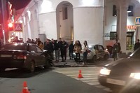 19 октября во Владимире на перекрестке улиц Большая Московская и Гагарина столкнулись два автомобиля, один из которых в результате вылетел на тротуар. Пешеходы чудом успели отскочить.