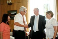Глава города Гусь-Хрустального Юрий Гришкин и председатель горсовета Николай Балахин встретились с добровольными помощниками из числа гусевчан, которые приняли участие в тушении пожаров, а также с теми, кто кормил огнеборцев и организовывал нормальные условия для сна и отдыха приезжим военнослужащим из трубопроводного батальона на базе средней школы № 14 в поселке Гусевском.