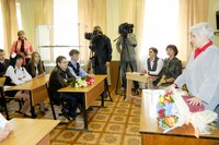20 лет назад, 1 сентября 1994 года, писатель Александр Солженицын, вернувшийся на Родину после долгих лет заграничной жизни, посетил поселок Мезиновский Гусь-Хрустального района, где он после ссылки работал учителем математики в местной школе в 1956-1957 учебном году. И вот спустя 20 лет в Мезиновскую среднюю школу имени Солженицына приехала вдова писателя Наталья Дмитриевна, президент Русского общественного фонда Александра Солженицына.