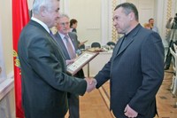 Губернатор Николай Виноградов вручил награды ведущим товаропроизводителям региона победители Победителями областного конкурса качества продукции стали 16 организаций. Знак качества «Владимирская марка» присвоен 20 видам товаров, промышленных и продовольственных, а также товарам производственно-технического назначения. Кроме того, ценных подарков и денежных премий удостоены народные умельцы - победители и лауреаты областных конкурсов на лучшую новогоднюю елочную игрушку и сувенир.