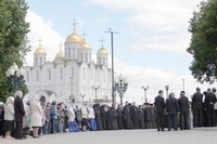 Около 40 тысяч владимирцев и паломников из других российских городов встречали предстоятеля Русской православной церкви на площади перед Успенским собором.