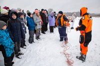 Необычайно оживленно было 30 ноября на заснеженном пляже у водоема Семязино во Владимире. Собралось много детей. Дело в том, что в регионе продолжается акция «Осторожно, тонкий лед!», традиционная для периода ледостава. В рамках этой акции на Семязинском берегу сотрудники МЧС устроили мастер-класс для школьников: показали на практике, как помогать провалившемуся под лед, и как спасаться самому, если провалился.