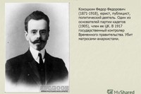 В историческом календаре юбилейная дата - 145 лет со дня рождения Федора Федоровича Кокошкина, выпускника Владимирской гимназии. Сегодня имя этого правоведа и политика, широко известного 100 лет назад, приходится возвращать из забвения. А ведь он ценой жизни пытался направить Россию по пути демократии.
