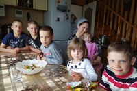 Оксана Евдокимова из поселка Лунево – настоящая героиня, мама десяти детей! Когда заходишь в их дом, то, кажется, будто попадаешь в детский сад: настолько много там малышей с ясными голубыми глазами. А принесенных для угощения пакетиков с конфетами и печеньем хватает на встрече минут на десять.