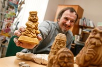 Профессиональный резчик по дереву Игорь Фролов несколько лет назад перебрался с семьей в Суздаль - «поближе к природе». Главному увлечению всей жизни он отдал уже 40 лет. Сначала вырезал обычным складным ножом из сосновой коры машинки и лодочки. А затем стал выстругивать из березы и осины мечи и сабли.