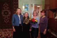 Врио первого заместителя губернатора области пришла к юбилярше - Нине Гавриловне Юрковой с директором департамента соцзащиты населения Любовью Кукушкиной. С поздравлениями, цветами и подарками.