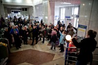 Центр классической музыки и областной театр кукол организовали на железнодорожном вокзале Владимира флешмоб - исполнение песни Алексея Фатьянова «Когда весна придет, не знаю» из ленты «Весна на Заречной улице».