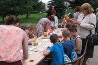 В недавно открывшемся Муромском доме-интернате для престарелых и инвалидов прошли торжества по случаю Дня России. Погода благоволила: на асфальтовой площадке дети вместе со своими родителями увлеченно участвовали в конкурсе - рисовали цветными мелками свою Родину - такой, какой они ее видят.