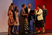 9 июня в областном драмтеатре прошло торжественное собрание, посвященное Дню России. В нем приняли участие губернатор Светлана Орлова, председатель Законодательного Собрания Владимир Киселёв, главный федеральный инспектор Сергей Мамеев и митрополит Владимирский и Суздальский Евлогий.