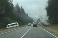Стали известны подробности ДТП с участием автобуса футбольного клуба "Грань". Дети отправились во Владимир на экскурсию, но по пути из Гусь-Хрустального в автобус влетел легковой автомобиль. Легковушка от удара загорелась. Происшествие случилось 16 июня в 11-45.