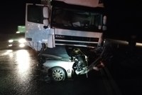 В 2 часа ночи 16 апреля у поворота на аэропорт легковой автомобиль врезался в фуру и превратился в груду металла.
