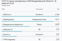 «Владимирские ведомости», наряду с традиционной бумажной версией, продолжают развивать свой интернет-портал www.vedom.ru. По результатам III квартала 2018 года «ВВ» вошли в топ-три рейтинга цитируемости медиаресурсов региона компании «Медиалогия».