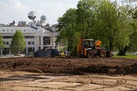 Большинство жителей областного центра еще не знают, что на углу Октябрьского проспекта и улицы Мира уже вовсю ведутся работы по созданию военно-патриотического сквера: здесь работают бульдозеры, экскаваторы, снуют «КамАЗы». Деревья, между которыми когда-то были проложены извилистые дорожки, уже спилили и даже стали выкладывать плиткой одну из аллей будущего сквера. Работа кипит!