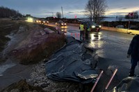 В субботу, 30 марта, на 269 километре федеральной автотрассы Р-132 «Золотое кольцо» в Суздальском районе из-за талых вод произошёл размыв участка дороги. Сотрудникам ГИБДД и строителям пришлось в срочном порядке организовывать реверсивное движение.