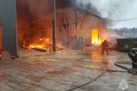 В деревне Вяткино под Владимиром загорелся склад предприятия деревообработки
