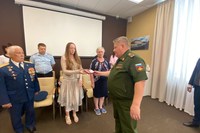 Глава города Владимира Дмитрий Наумов и председатель городского Совета народных депутатов Николай Толбухин вручили орден Мужества дочери бойца СВО Романа Токманя, который получил его посмертно.