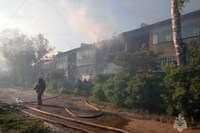 Сотрудники МЧС России ликвидируют крупное возгорание в многоквартирном доме в селе Черкутино Собинского района Владимирской области. По состоянию на 19 часов пожарные локализовали открытое горение на площади 1100 квадратных метров.