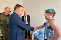 Мэр города Владимира Дмитрий Наумов вручил бойцу СВО медаль «За Отвагу»
