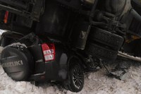 Утром 23 января на трассе Р-132 «Золотое кольцо» в Гусь-Хрустальном районе Владимирской области произошло столкновение кроссовера "Сузуки" с грузовиком "Вольво". В результате ДТП грузовик перевернулся на бок и раздавил рамно-интегрированный кузов внедорожника.