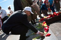 В областном центре памятные мероприятия накануне Дня Победы стартовали по традиции с улицы Победителей. Жители вышли с портретами своих близких, воевавших или трудившихся в тылу, возложили цветы к обелиску.