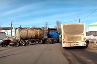 Пользователь социальной сети Вконтакте опубликовал запись с камеры видеорегистратора, на кадрах которой водитель автоцистерны подрезает пассажирский автобус марки "Волгабас" на Рокадном шоссе во Владимире. По счастливой случайности водителям удалось избежать аварии (+ВИДЕО).