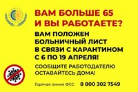 Департамент здравоохранения Владимирской области сообщает о том, что работающие граждане старше 65 лет, решившие остаться на самоизоляции из-за коронавируса, смогут получить больничный с 6 по 19 апреля.