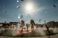 В зной и жару у дорожников особая забота - специалисты «Центра управления городскими дорогами» ежедневно - не менее двух раз в сутки - поливают раскаленный асфальт, чтобы снизить уровень его возможной деформации. Струи поливальных машин охлаждают и воздух.