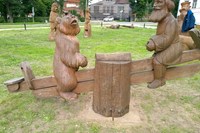 Детская площадка в центре Суздаля - напротив Торговых рядов - была демонтирована в рамках благоустройства территории. Сейчас все 16 деревянных скульптур, подаренных городу мастерами Праздника топора, возвращены на место.