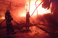 Сотрудники МЧС ликвидируют крупный пожар на обувных складах в Муромцево