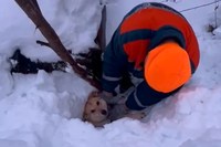 В Коврове спасатели вызволили из беды собаку, попавшую в снежный плен