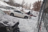 Во Владимире снег и глыбы льда с крыши сошли на припаркованные автомобили