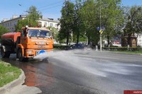 «Для предупреждения пластических деформаций асфальтового покрытия в жаркую погоду и поддержания водного баланса дважды в день производится поливка центральных городских магистралей», - сообщает пресс-служба владимирской мэрии.