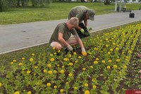 Во Владимире специалисты муниципального предприятия «Зеленый город» обустраивают на улице Мира 16 новых клумб. Будет высажено более 45 тысяч однолетних цветов: розовых петуний и ярко-оранжевых бархатцев.