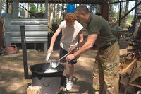 Сотрудники отдела специального назначения «Мономах» УФСИН России по Владимирской области внесли свой вклад в создание кулинарной книги «Готовь как спецназ», которую ФСИН России планирует выпустить к 35-летию отделов специального назначения. В полевых условиях бойцы вместе с учениками Свято-Екатерининской православной школы приготовили макароны по-грузински.