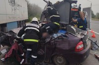 Спасатели аварийно-спасательного отряда АСС Владимирской области сегодня в 5:30 ликвидировали последствия серьёзного ДТП. На трассе М-7 у поворота на село Добрынское Суздальского района водитель "легковушки" въехал в фуру, стоявшую на обочине.