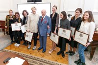В Москве в знаменитом Белом зале Российской академии художеств наградили студентов МГАХИ имени В.И. Сурикова за создание мозаичного панно «Спас на троне». Эту работу ребята выполнили для фасада усыпальницы князя Дмитрия Пожарского в городе Суздале Владимирской области.