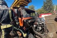 Сообщение о пожаре салона и моторного отсека грузовика дежурная смена МЧС получила в 9:40 утра. Возгорание охватило два квадратных метра площади.