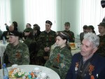 - Музыкальная часть вечера была вообще хороша военные, но жизнерадостные песни прозвучали в исполнении ансамбля народной песни «Раздолье» и Ларисы Вуколовой. Присоединился к ним и хор ветеранов Гороховецкого центра социального обслуживания населения с песней о России. А волонтеры Гороховецкого колледжа не только спели и подарили героям дня цветы, но и рассказали о том, как помогают ветеранам в быту. Волонтерское движение вышло за пределы города и дошло до деревень. Дел у молодежи много расчистка снега, уборка в доме, работа на приусадебных участках, колка дров и другая, самая разнообразная помощь. Проводится в районе и поисковая работа, благодаря чему 12 семей получили информацию о своих пропавших без вести родственниках.
