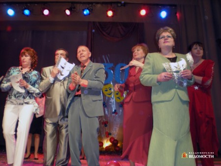 В этот раз гусевских любителей искусства и труппу театра приятно удивил мэр города Юрий Гришкин, с удовольствием просмотревший спектакль и всю программу юбилейных торжеств, чем давненько не баловали местных театралов городские руководители высшего ранга. После его теплых слов, обращенных к юбилярам, председатель комитета по культуре и туризму Владимир Крючков вручил артистам Благодарственные письма, получили виновники торжества и памятные подарки. Этим вечером в адрес артистов народного театра прозвучало много поздравлений, восторженных эпитетов и искренних пожеланий. Концертная часть праздника включала танцевальный фрагмент в интерпретации хореографического ансамбля «Хрустальные грани», проникновенное чтение стихов Маргаритой Земцовой, сцены из спектакля «Пеппи длинный чулок» в исполнении юных артистов музыкального театра «Созвездие», песнопения Михаила Барыкина, ансамбля «Аранжимент» и молодежного ансамбля «Ступеньки».