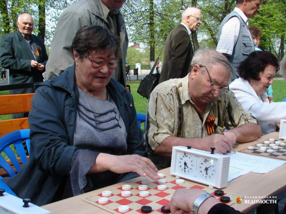 В канун Дня Победы шашисты областной федерации приняли участие в организованном владимирским отделением всероссийского женского союза «Надежда России» и владимирским городским комитетом КПРФ массовом празднике шахмат и шашек - Кубке Победы, состоявшемся 8 мая в парке им. Пушкина областного центра.