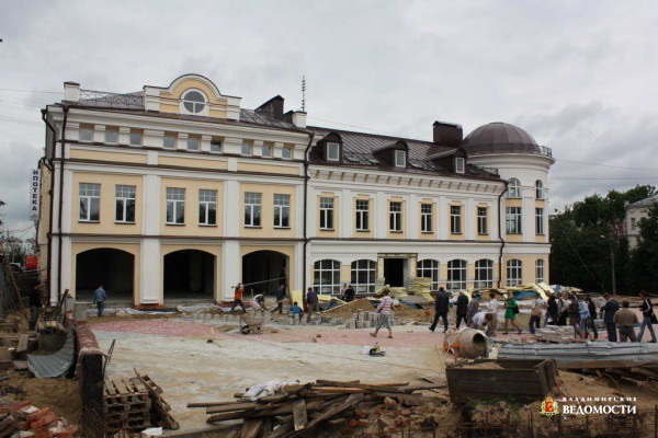 Помимо туалетов на нижнем этаже здания, здесь разместятся несколько кафе, региональный центр по торговле сувенирами и украшениями, книжный магазин, информационный центр, магазинчики и офисы. Все коммуникации ведутся «методом проколов», то есть нигде ничего не раскапывается. И работа по проколам и завозке материалов предусмотрительно проводится в основном с 23.00 до 4 утра, чтобы никому не мешать. До Дня города инвестор пообещал облагораживание территории (фонари, газоны, лавочки) и открытие кафе и мест общего пользования. «Все остальные работы закончим в октябре».