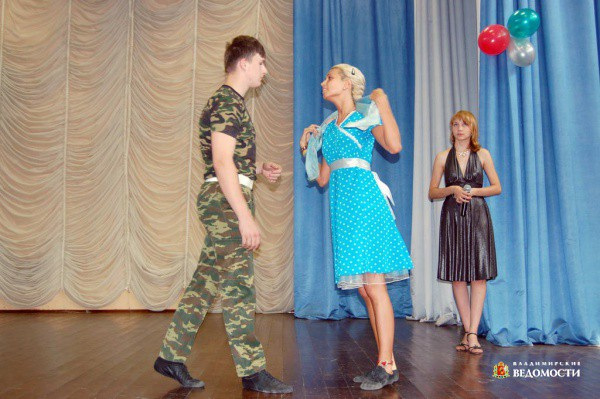 Танцевальную часть номера исполнили самая именитая участница группы «Барокко», 16-летняя ученица школы № 37 Дария Деревнина и учащийся профлицея № 7 , будущий повар Олег Штыбен. Получился настоящий музыкальный мини-спектакль, в котором были встреча и прощание молодого солдата и девушки и, конечно, сам синий платочек.