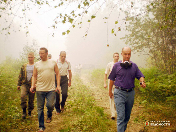 Председатель ЗС приехал сюда по приглашению районного Совета народных депутатов и директора «Стеклохолдинга» Юрия Клегга, «чтобы ознакомиться на месте с ситуацией, которая сложилась с лесными пожарами в Гусь-Хрустальном районе, и, может быть, совместно определить роль и депутатов всех уровней власти, и населения в этой работе… Если есть какие-то недостатки, надо подумать, как их устранить». Вместе с председателями райсовета Александром Ивановым и городского Совета Николаем Балахиным Владимир Киселев встретился с Юрием Клеггом, который по снимку из космоса дал полный «расклад» ситуации. Высказал критические замечания и предложения, в частности, выразил недовольство отсутствием необходимого количества специальной техники. Председатель областного парламента и сопровождавшие его лица отправились на место событий.Высоковольтная ЛЭП проходит по территории национального парка (НП) «Мещера». При ее проведении часть деревьев была повалена и оставлена на месте, остальная так и росла вдоль линии. В результате непосильной жары началось самовозгорание богатой торфом почвы, прогар достигает полутора метров вглубь. Были и другие причины возгораний. Пожар растянулся на два километра, подгоревшие с корня деревья стали падать и повредили ЛЭП, подача электричества по ней прекратилась. Тогда энергетики начали вал леса в зоне ЛЭП. В настоящее время электроснабжение поселка Уршельский и окрестных населенных пунктов осуществляется по резервной линии 35 кВт, которая работает на пределе своих возможностей. С огнем там борются госинспекторы НП «Мещера», экипаж пожарной машины МЧС, работники Уршельского стеклозавода, входящего в ОАО «Стеклохолдинг», с техникой, местные жители, в их числе предприниматель Сергей Фомин, безвозмездно предоставивший принадлежащую ему пожарную машину и в значительной мере осуществляющий координацию сил, участвующих в пожаротушении. Люди трудятся самоотверженно с утра до позднего вечера. Организовано круглосуточное дежурство в лесных массивах.