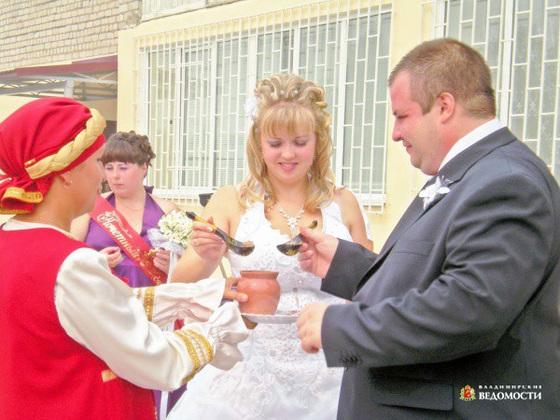 Узами Гименея связали свои судьбы Ольга Козлова и Василий Иванов. Эта семья зародилась в недрах администрации района, точнее ‑ отдела по культуре, физкультуре и спорту, социальной и молодежной политике. Ольга - умелый организатор культурных мероприятий и талантливая певица, а Василий - отменный компьютерщик и звукооператор. Скажем так ‑ счастливый служебный роман. На площадке перед входом в ЗАГС молодоженов, свидетелей и гостей встречали заместитель главы района Оксана Кабанова, заведующие отделами администрации Лидия Кемаева и Евгений Зайцев и разудалая «Варенька», а также наша журналистская братия. После церемонии бракосочетания новоиспеченные супруги выходят на парадное крыльцо. Артисты «Вареньки», все в русских народных костюмах с непременным гармонистом, раскладывают перед молодыми рушник и преподносят хлеб-соль: кто больше ломоть отломит, тот и хозяин в доме. Вышло, что хозяином будет муж, хотя по взгляду жены видно, что все не так однозначно. Запили хлеб чистой родниковой водой, это один из символов России. Угостили тем хлебом всех присутствовавших. Предложили молодоженам кашей гречневой из горшка покормить друг друга: много каши съедят ‑ много детей народится. Водили все хоровод вокруг Ольги и Василия с песнопениями про жениха и невесту. Бросали им под ноги денежную медь, чтоб молодым не болеть; бросали пшено, чтоб счастьем проросло оно; лепестки роз, чтоб не было в жизни слез, а еще лук, чтоб не испытывать мук… Не обошлось, конечно, без задорных частушек, под которые молодоженов, повязанных рушником, провожали до свадебного кортежа. Все получилось весело, душевно, красиво, так что и городским незазорно будет узаконить свои семейные отношения в курловском секторе районного загса. И вообще, верится, что его открытие и праздничные обряды поспособствуют увеличению числа бракосочетаний, а значит, и рождаемости в отдельно взятом Гусь-Хрустальном районе, а значит, и во Владимирской области в целом.