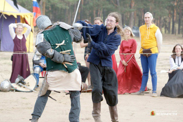 …В первый день участники состязались в историческом и ролевом фехтовании, стрельбе из лука и метании боевых копий. Друг с другом поочередно сражались то славянский воин с европейским рыцарем, то славянин с половцем, а тот, с европейцем, почти как в стародавние времена. Естественно, что каждый из реконструкторов был экипирован по всем правилам ‑ шлем, меч, щит, кольчуга, сапоги. Антураж дополняли стоявшие рядом и активно болевшие за своих кавалеров дамы, одетые в самые разные наряды. В этот день в этой точке города словно перемешались между собой разные страны и эпохи ‑ к примеру, в нарядах некоторых девушек, вполне себе современниц рыцарей, угадывались северные мотивы, наряды других являли собой образ жительниц Бургундии начала ХV века…