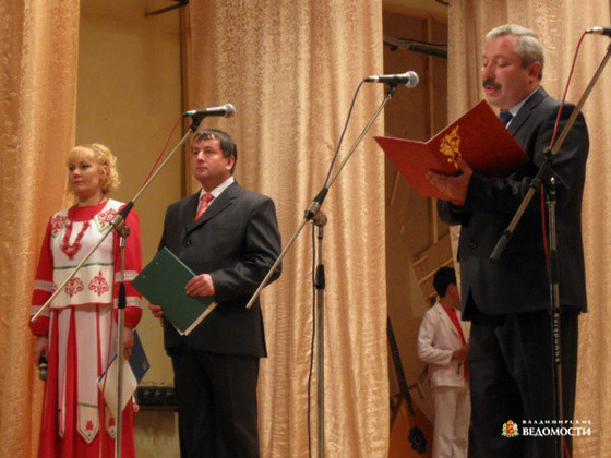 Выступил перед селянами и исполняющий обязанности главы района Владимир Лопухов, отметивший, что наступило время возрождения агропромышленного комплекса. Порадовала его и выставка продукции перерабатывающих предприятий, до 70% которой уходит на рынки области и за ее пределы. Ведущими торжественного вечера была зачитана поздравительная телеграмма, поступившая от депутата Госдумы Виктора Паутова. Затем состоялось награждение. Почетная грамота администрации области была вручена начальнику производства ОАО «Вязниковский молококомбинат» Тамаре Федоровой, а благодарность Законодательного Собрания области - механизатору ООО «ПЗ «Пролетарий» Егору Дотлову. Еще несколько отличившихся работников получили Почетные грамоты и благодарственные письма департамента сельского хозяйства и продовольствия администрации области. В номинации «Надежда села» были отмечены студенты Никологорского агропромышленного техникума Сергей Курбатов и Илья Спирин. Не остались без внимания и представители трех лучших подсобных хозяйств района - Сергей Иванкин из села Успенский Погост, Виктор Шутиков из поселка Мстера и Ольга Сафронова из поселка Октябрьский. Самой продолжительной церемонией стало награждение победителей соревнований в различных номинациях. Специалисты своего дела были отмечены денежными премиями. Участники выставки получили ценные подарки. Порадовало всех и выступление самодеятельных творческих коллективов.