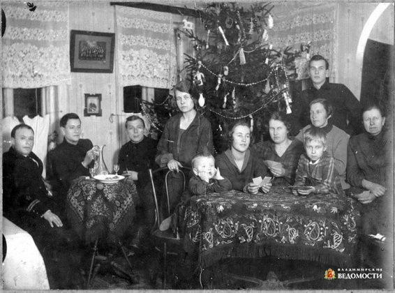 Вот как вспоминает о новогодней елке середины 30-х жительница Владимира, правнучка протоиерея Успенского собора, внучка священнослужителя Борисоглебской церкви Ирина Николаевна Павлова (1928 года рождения): «Куплена на базарной площади позади торговых рядов красавица елка. Это была забота папы. А еще задолго до этого собирались мы с подружками у нас дома, в бабушкиной комнате. Нас сажали за большой стол, раскладывали перед нами длинные узкие ленты цветной бумаги, вату, кисточки, ставили клей, сахарный сироп, краски, блеск. Мама и бабушка показывали, как делать елочные игрушки, и мы с увлечением принимались мастерить кукол, Деда Мороза, яблоки, гирлянды-цепочки из цветной бумаги, разноцветные флажки и прочие украшения на елку. Шары и другие стеклянные изделия для елки в продаже были редкостью.