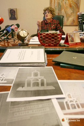 - Как позже выяснилось, собрались в таком составе: Владимир Немков, начальник управления архитектуры и строительства, секретарь Немкова и еще три чиновника из ведомства Владимира Андреевича, - с возмущением пожаловалась журналистам президент Владимиро-Суздальского музея-заповедника Алиса Аксенова на пресс-конференции. - Стелы высотой 12 метров - это, оказывается, не монументы, а элементы благоустройства!