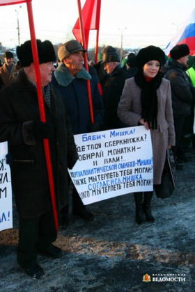 7 февраля на площади у здания областной администрации работники ООО «Мехколонна» провели заявленный пикет, хотя без слабенького рупора все-таки не обошлось. Были и многочисленные плакаты, вот некоторые: «Бабич, вон из Владимира», «Сахаров, Бородин, Бабич, не позорьте партию Путина», «Бандиты-партийцы, хватит кошмарить бизнес», «Бабич - позор Госдумы»... Особое возмущение у коммунальщиков явно вызывает именно фигура Михаила Бабича.Директор ООО «Мехколонна» Виктор Добровольский, снятый с выборов в горсовет по надуманным, как он считает, основаниям, заявил, что в «наш город пришла беда»: «Фискальные органы, покорные политическим интриганам, проводят на предприятии бесконечные проверки, тем самым хотят сломить волю коммунальщиков. Им удалось убрать из списков почти всех представителей «Мехколонны». Директора поддержал водитель Альберт Пластинин: «Мы открыты для любых проверок и работаем хорошо. Третье место по России что-то да значит! Я тружусь в «Мехколонне» 20 лет, у нас нет и никогда не будет такого коммунального хаоса, как в Нижнем Новгороде или Питере, если наше предприятие не будет захвачено варягами».